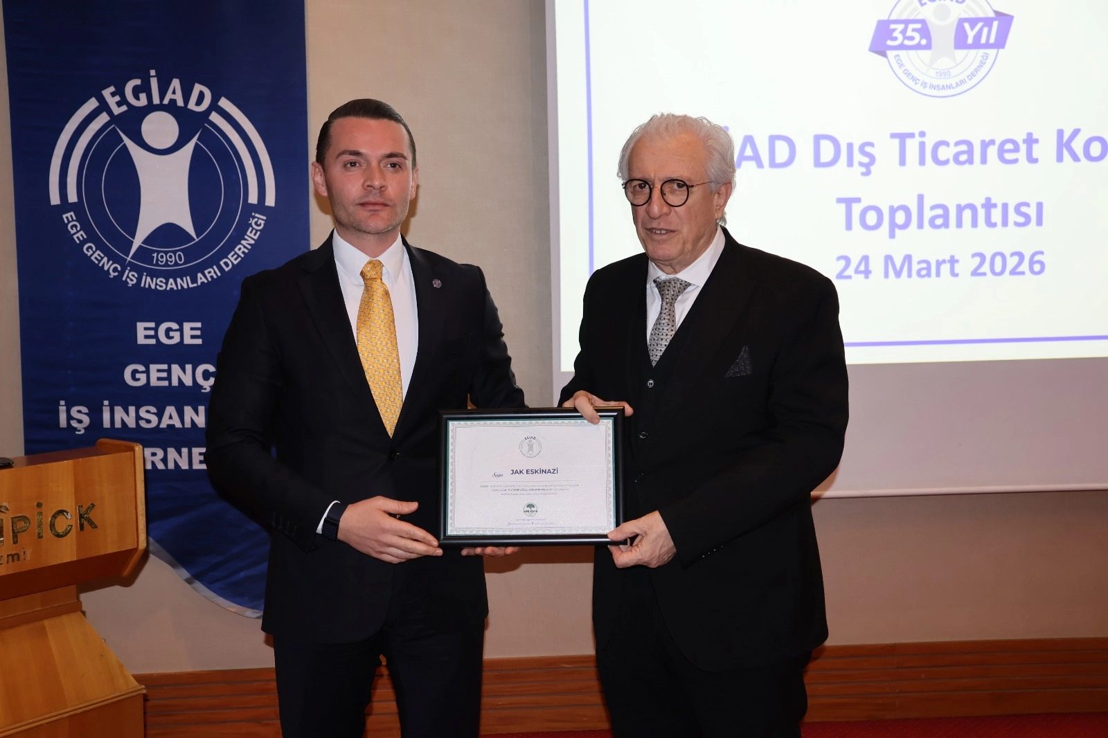 Ege İhracatçı Birlikleri Koordinatör Başkanı Jak Eskinazi, ihracatı bir ülkenin kalkınma iradesi olarak tanımlayarak, “Türkiye gibi gelişmekte olan bir ekonomi için üretim kadar önemli olan şey, o üretimi dünya pazarlarında değerli hale getirebilmektir. İhracat, döviz kazandırır, istihdam yaratır, firmaları disipline eder, kaliteyi yükseltir, verimliliği artırır ve ülkeyi küresel rekabetin bir parçası yapar. İhracat yapmayan bir şirket sadece kendi büyüme fırsatını kaçırmış olmaz. Aynı zamanda ülkenin dış ticaret dengesine, üretim kapasitesine, teknoloji gelişimine ve döviz gelirine de katkı sunmamış olur. Ben her zaman şuna inandım: Türkiye tüketimle değil, üretim ve ihracatla büyümelidir. Sağlıklı büyümenin yolu budur.” dedi.