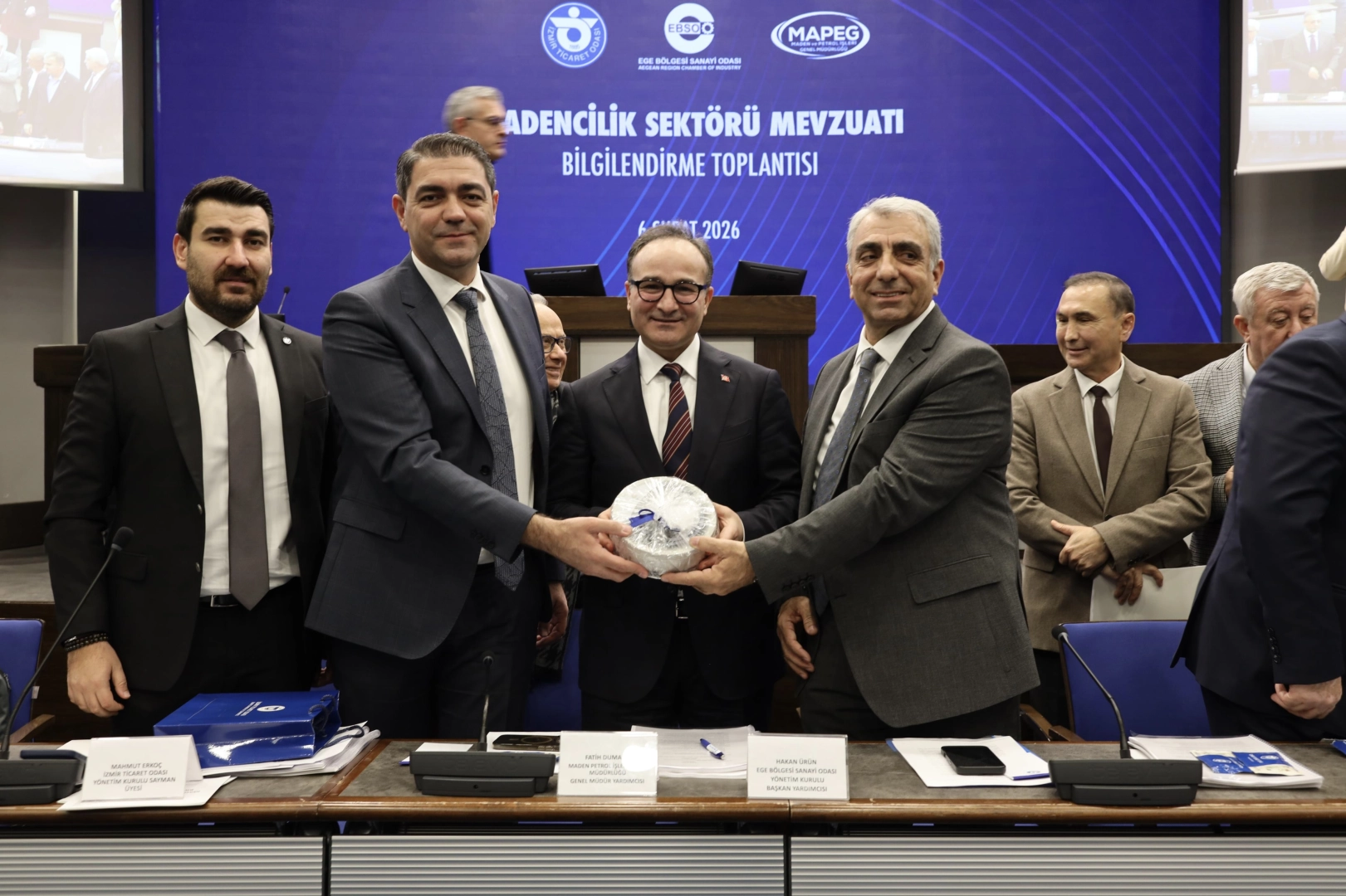 Madencilik Sektörü Mevzuatı Bilgilendirme Toplantısı, İzmir Ticaret Odası, Ege Bölgesi Sanayi Odası ile Maden ve Petrol İşleri Genel Müdürlüğü iş birliğiyle İzmir Ticaret Odası ev sahipliğinde düzenlendi. Maden ve Petrol İşleri Genel Müdür Yardımcısı Fatih Dumanlı’nın mevzuat ve uygulamaya yönelik bilgilendirmelerde bulunduğu toplantıda katılımcıların soruları yanıtlandı.