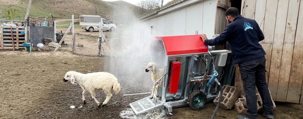 Koyun, kuzu, keçi gibi küçükbaş hayvanların el değmeden makineyle ilaçlanması sayesinde üreticilerin zamandan tasarruf etmelerine olanak sağlanıyor.