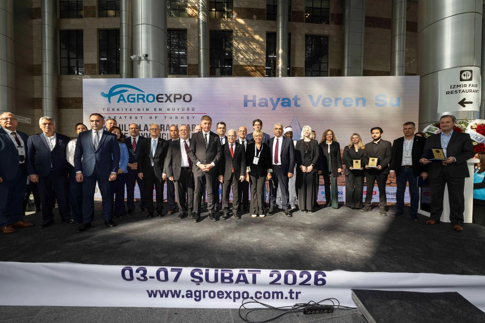 İzmir Ticaret Odası Meclis Başkanı Selami Özpoyraz, Agroexpo’nun yalnızca bir fuar değil, kararlılıkla büyütülen ve sahip çıkılan güçlü bir marka olduğunu belirterek, “Fuarımız, Türkiye’nin üretim gücünü, bilgi birikimini ve gelecek hedeflerini dünyaya anlatan çok önemli bir buluşmadır” dedi. İzmir Ticaret Borsası Meclis Başkanı Ömer Gökhan Tuncer, su kaynaklarının azaldığını ve birçok bölgede toprak kalitesinin bozulduğunu belirterek, “Dünya tarımı, daha az kaynakla daha fazla ve daha kaliteli üretim yapma zorluğuyla karşı karşıya” diye konuştu. Ege Bölgesi Sanayi Odası Yönetim Kurulu Başkan Yardımcısı Hakan Ürün, günümüzde dijitalleşme ve yapay zekânın öneminin sıkça vurgulandığını belirterek, tarım ve hayvancılığın hâlâ en stratejik sektörlerin başında geldiğini söyledi.
